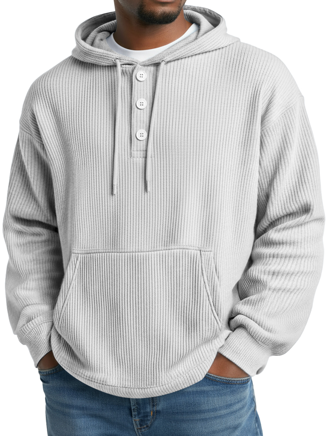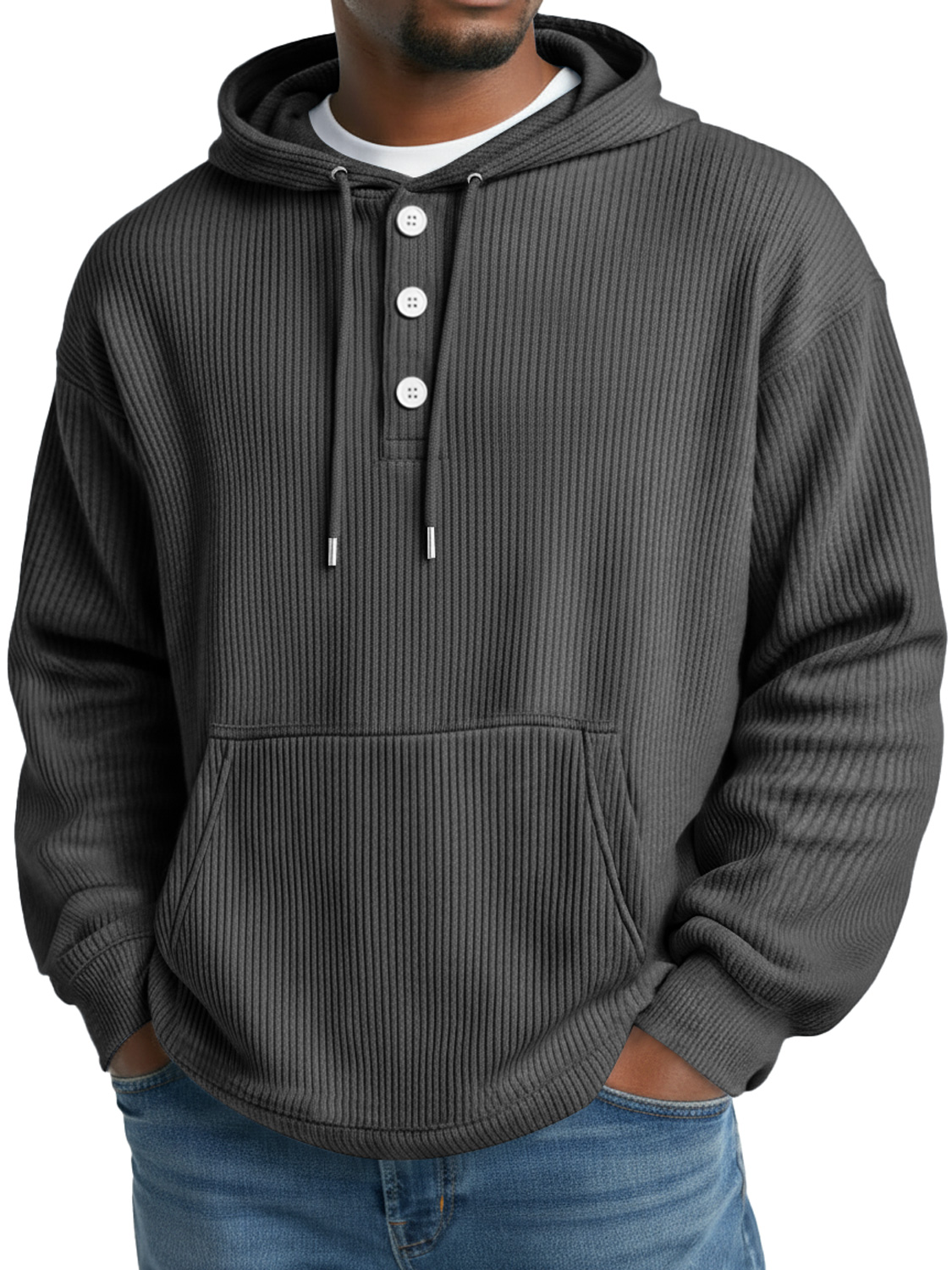 Sweat à capuche uni à boutons rayé décontracté pour homme