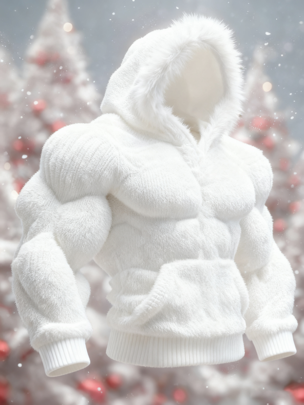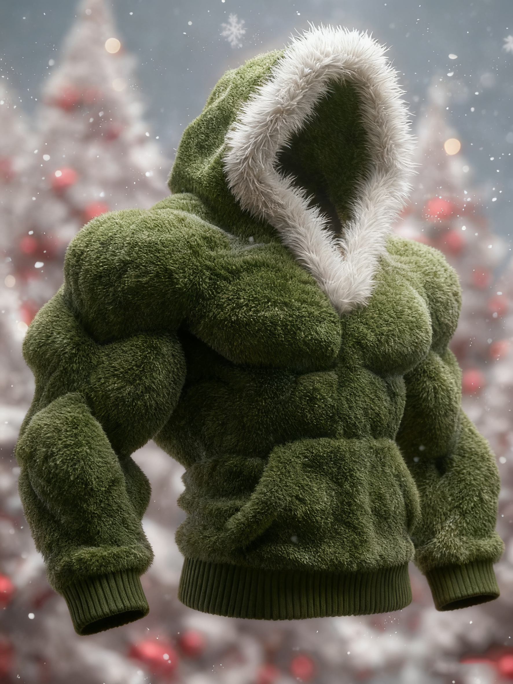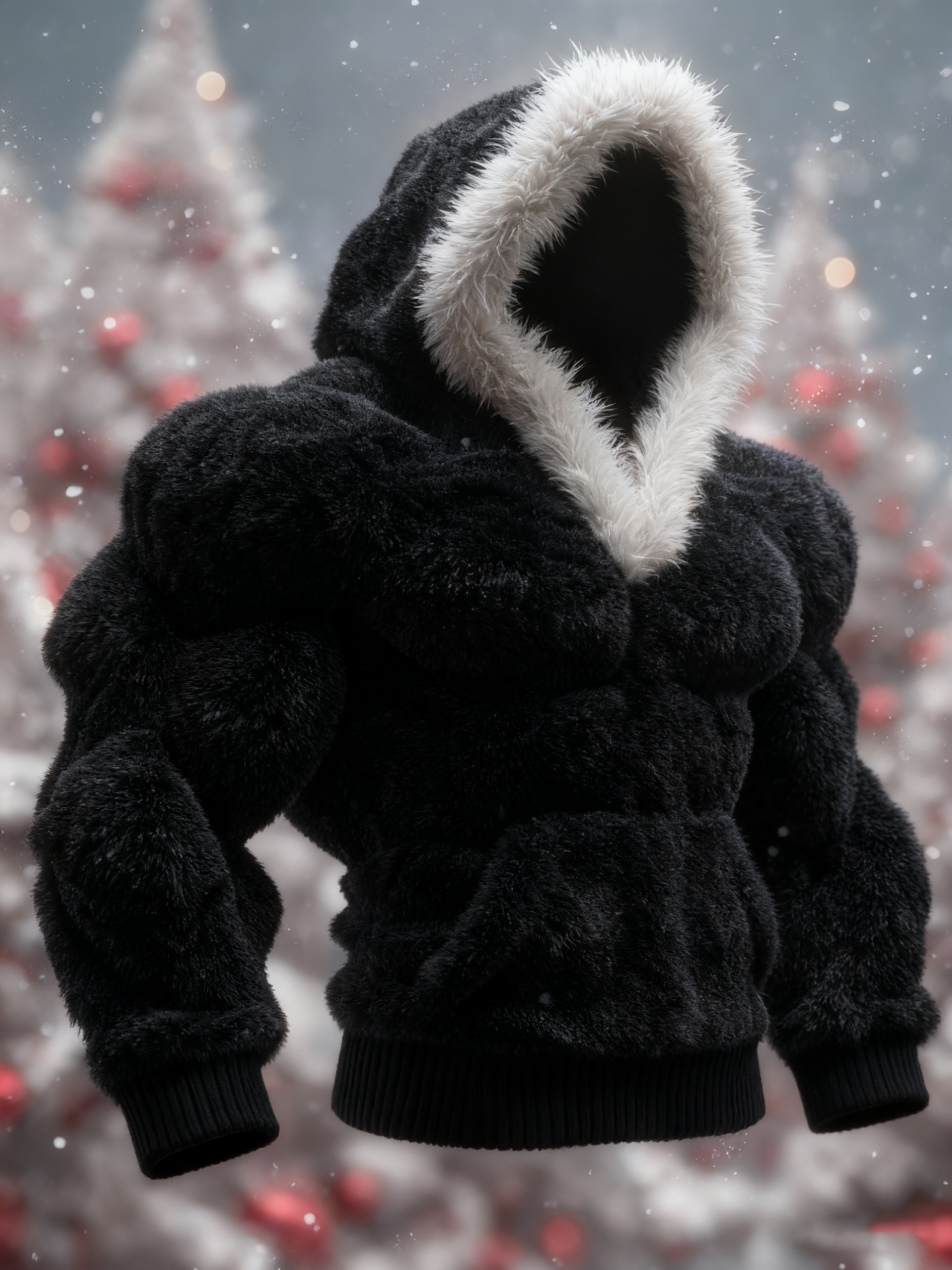 Pull de Noël pour homme à capuche et col en fourrure tricotée