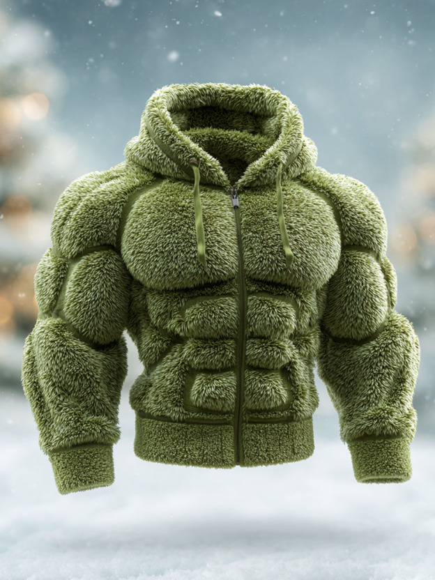 Pull à capuche zippé en tricot vintage pour hommes, art linéaire de Noël