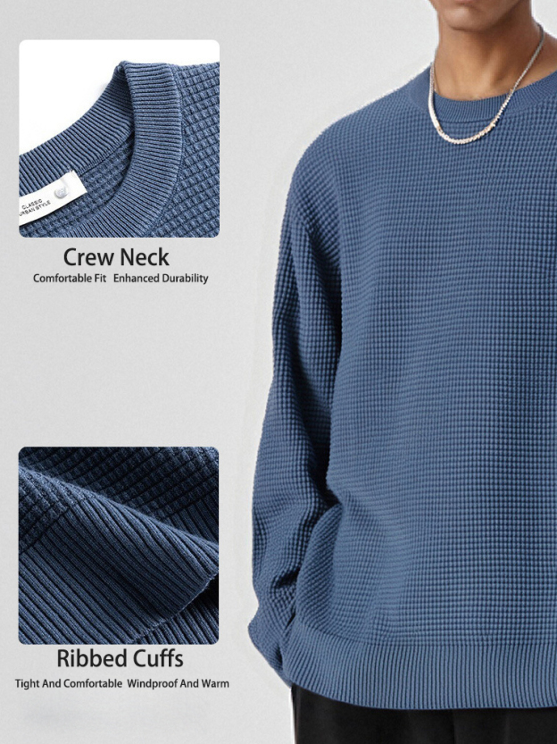 Herren Rundhals Waffelmuster Lockere Strickpullover