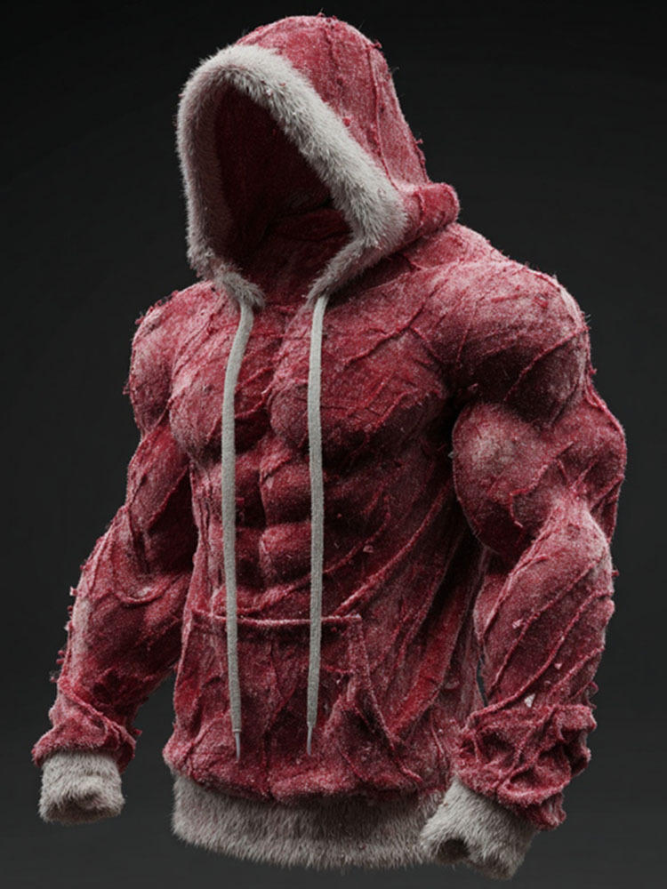 Hoodie en peluche confortable avec art linéaire vintage de Noël pour hommes