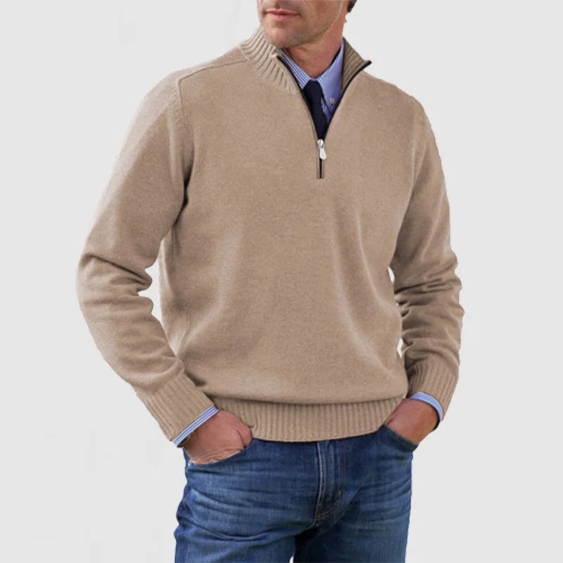 Pull de base à fermeture éclair en cachemire pour homme, style décontracté, hiver