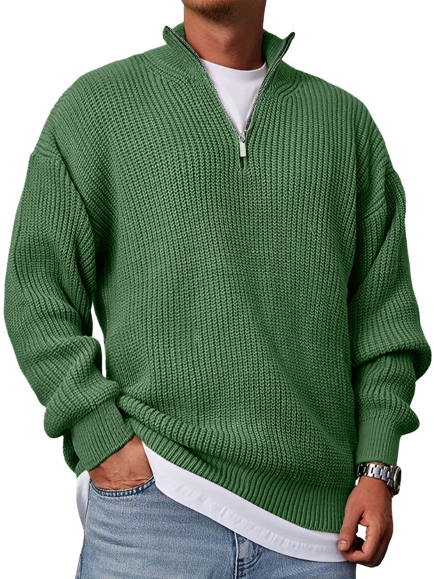 Herren Freizeitmode Lockere Stehkragen Reißverschluss Einfarbiger Pullover