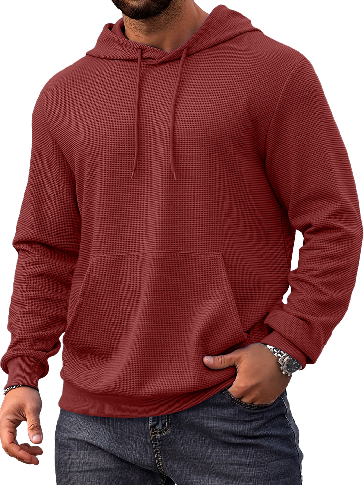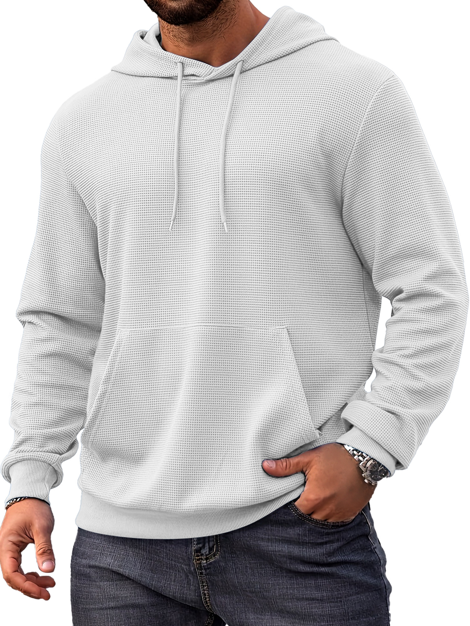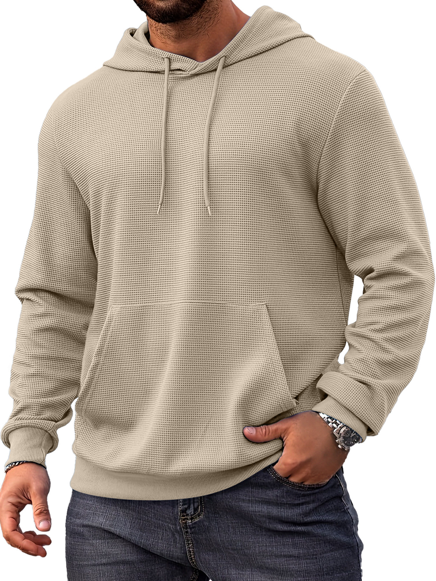 Herren Alltags Einfach Waffel Bequem Langarm Kapuzenpullover