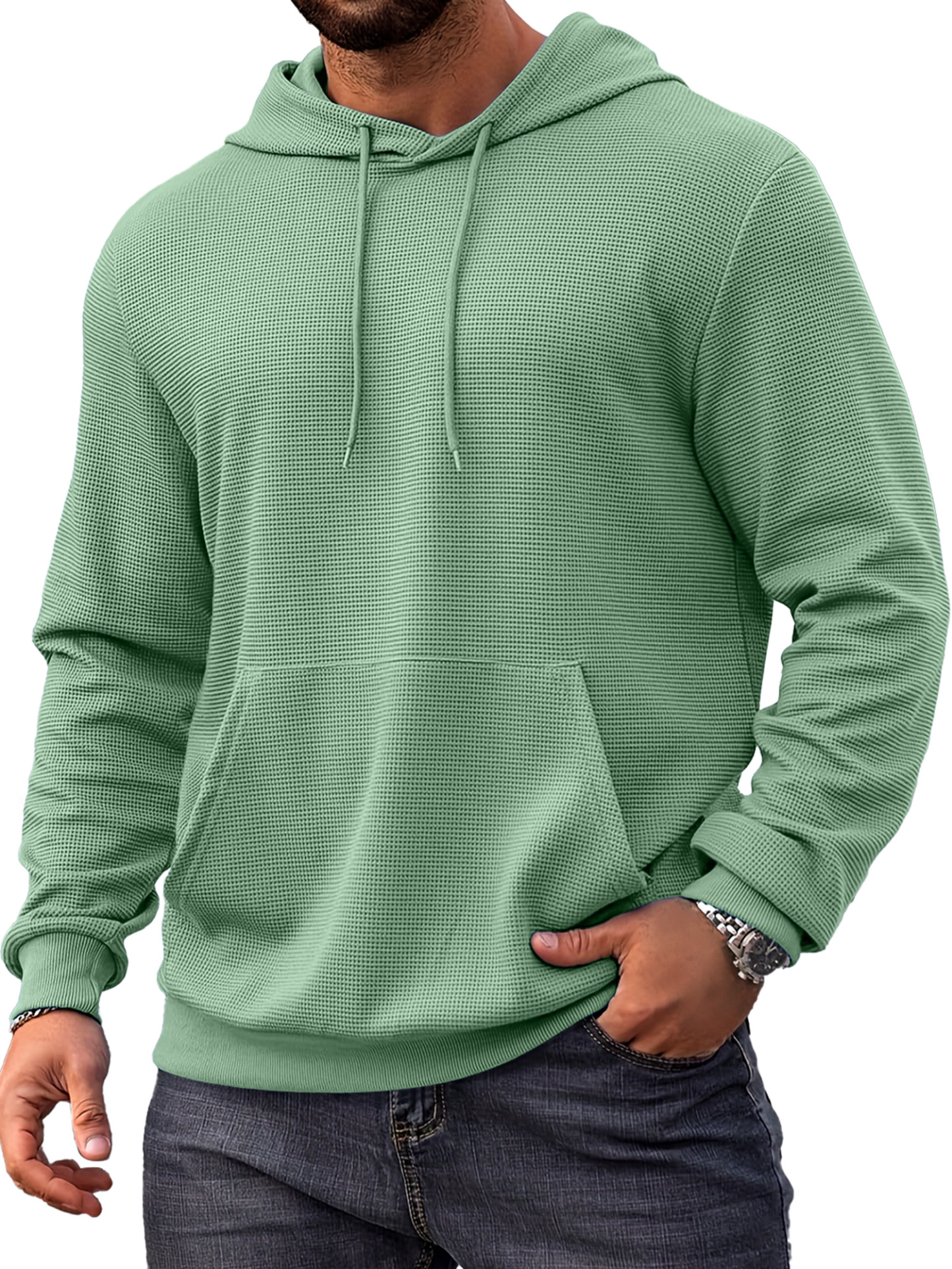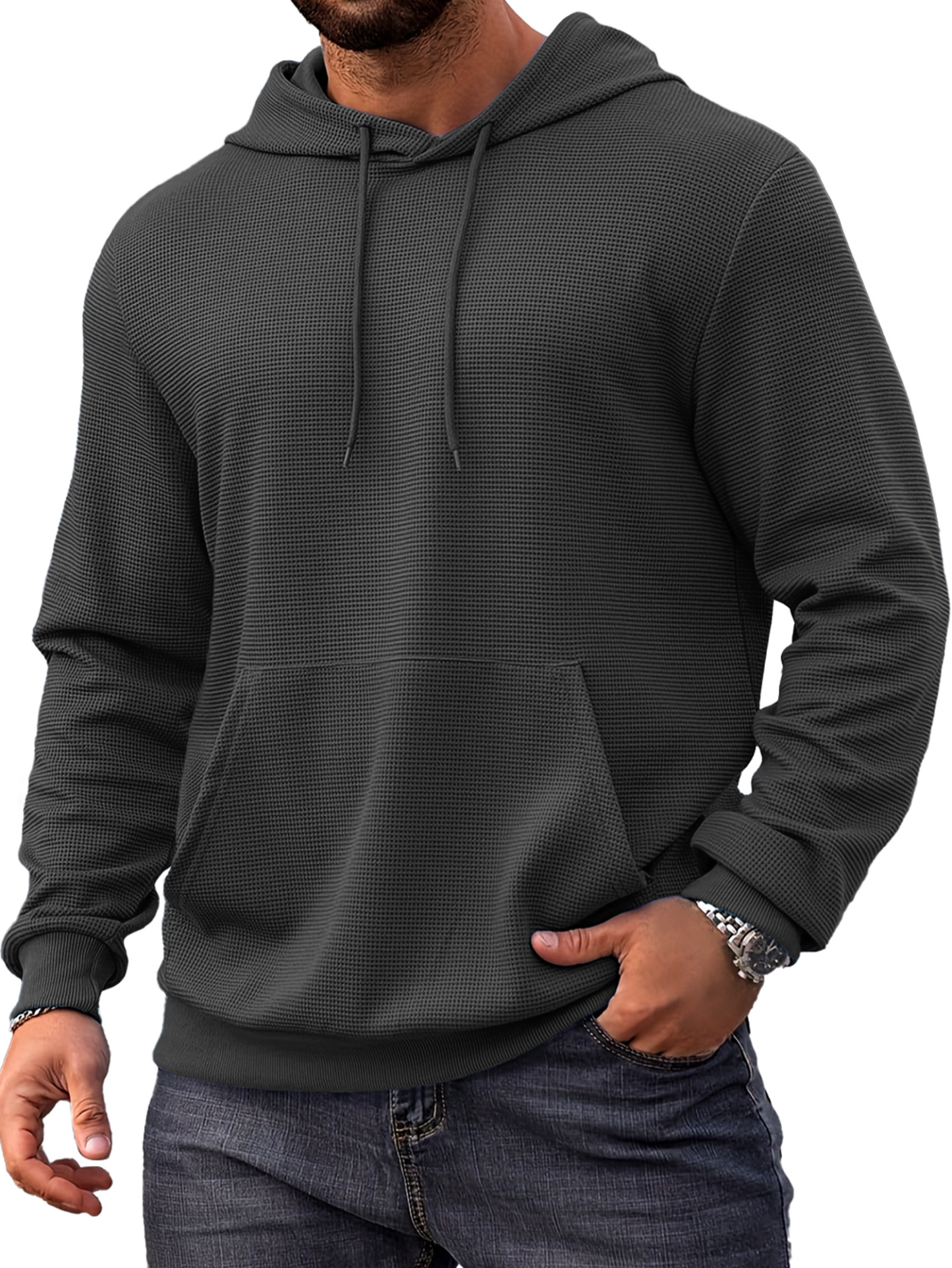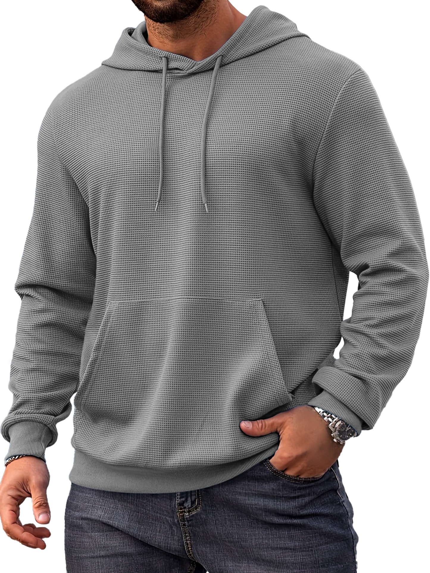 Herren Alltags Einfach Waffel Bequem Langarm Kapuzenpullover
