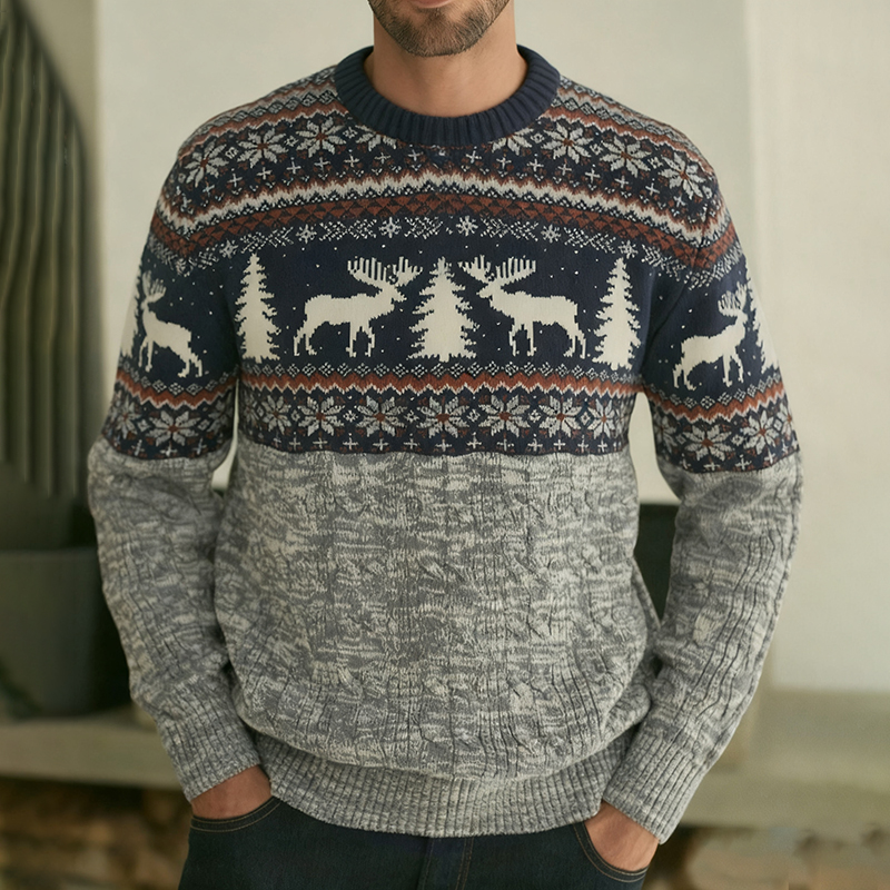 Herren Rentier Regular Fit Weihnachtskunst Rundhals Pullover