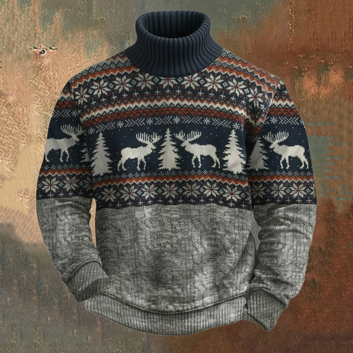 Herren Rentier Regular Fit Weihnachtskunst Rollkragenpullover