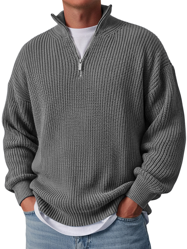 Herren Einfacher Lässiger Lockere Stehkragen Reißverschluss Einfarbiger Pullover
