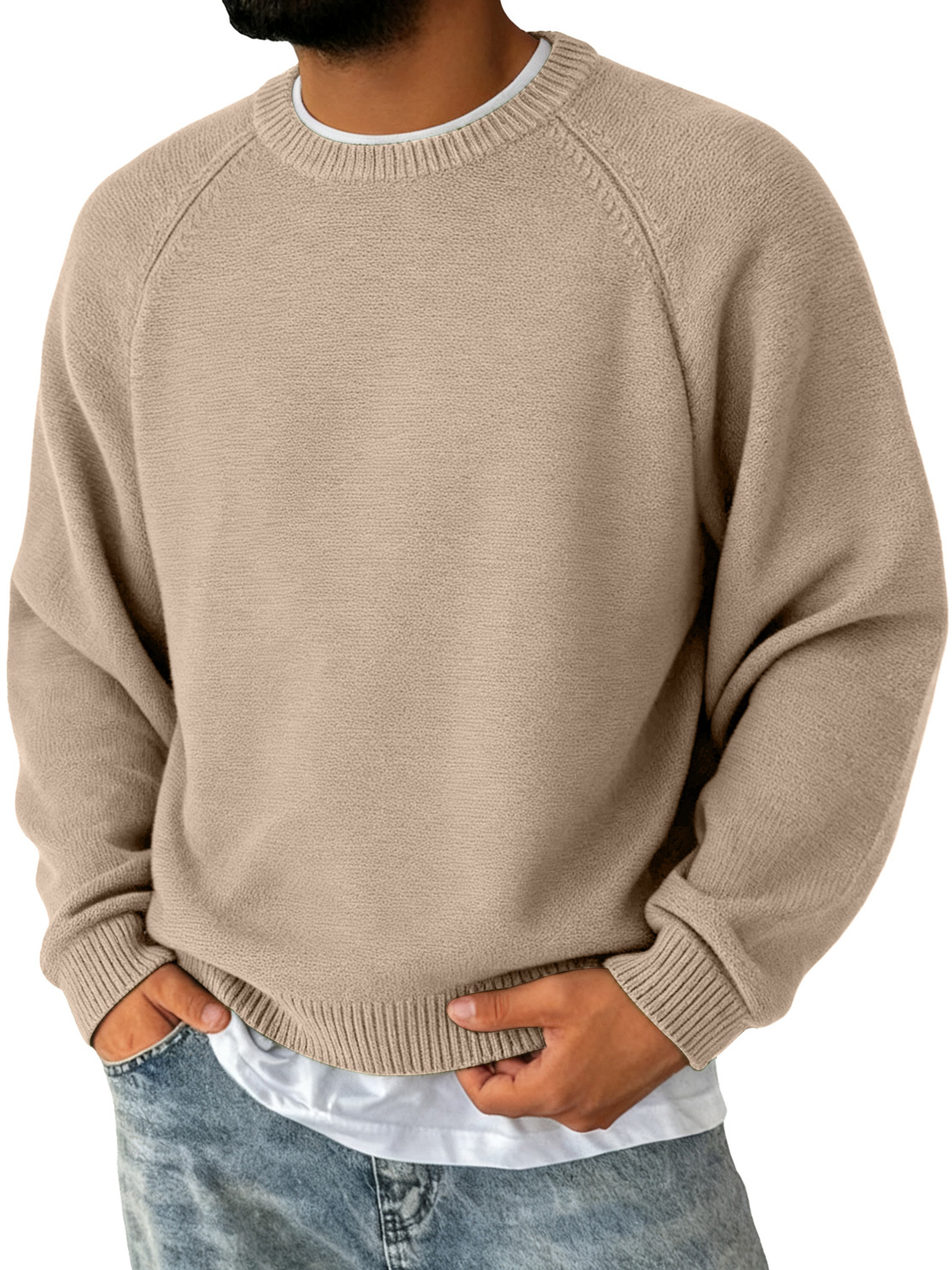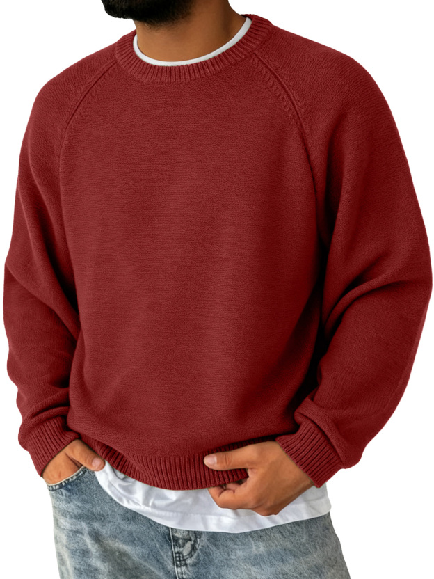 Herren Einfacher Rundhalsausschnitt Raglanärmel Freizeit Bequemer Pullover
