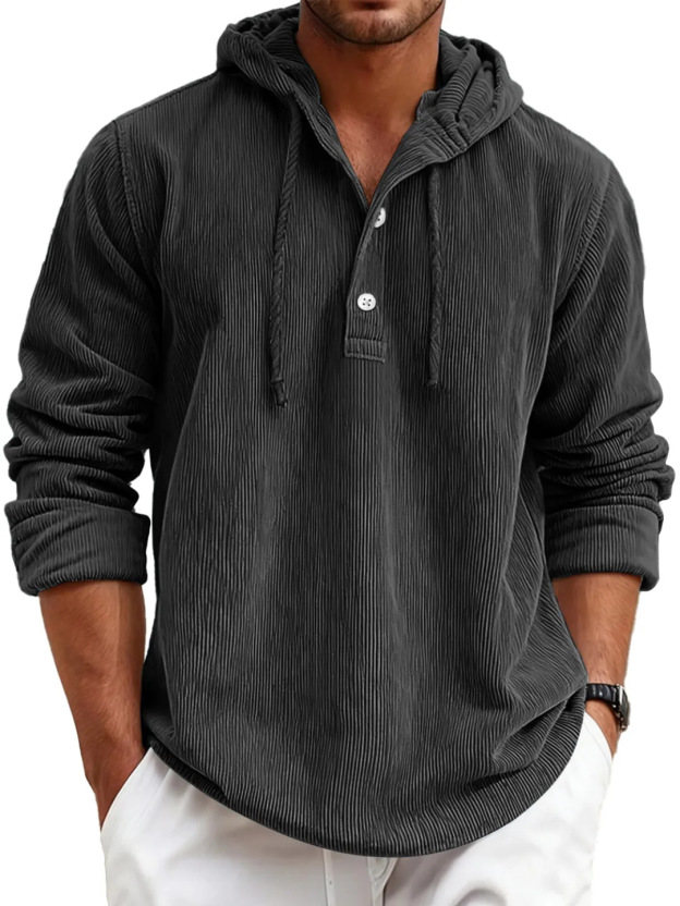 Herren gestreiftes Perlenbaumwoll-Halshirt mit Kapuze und Knopfverschluss