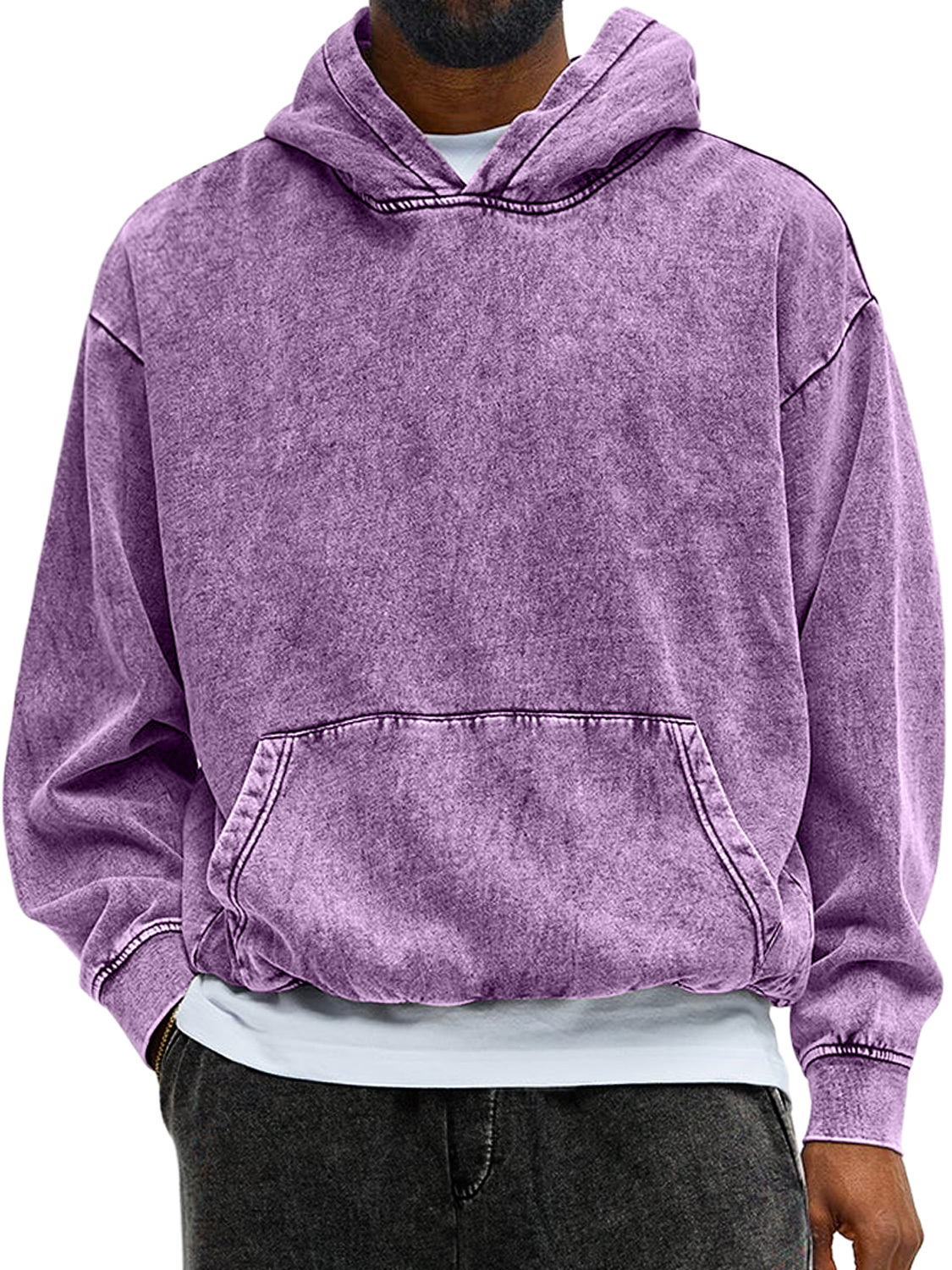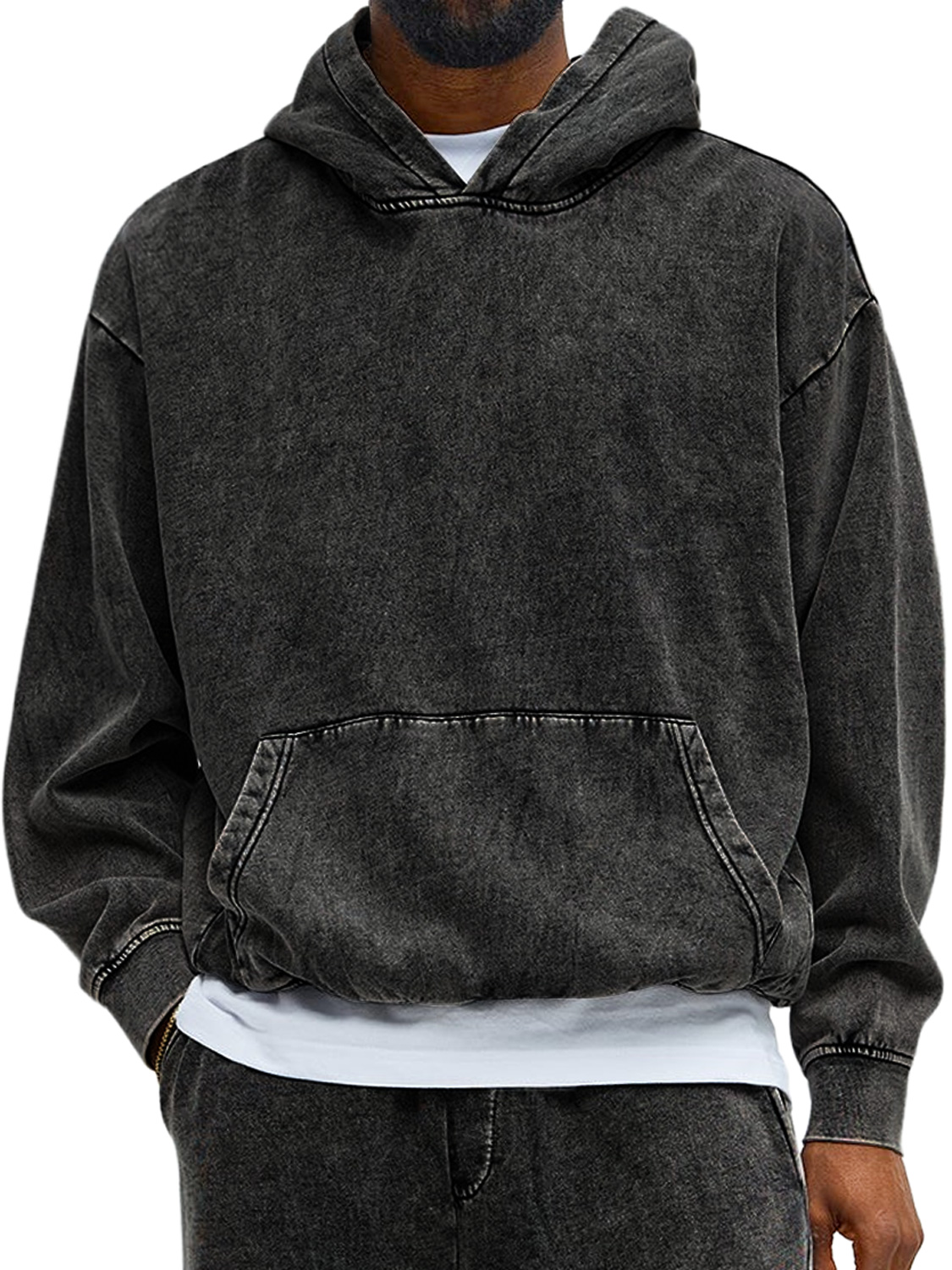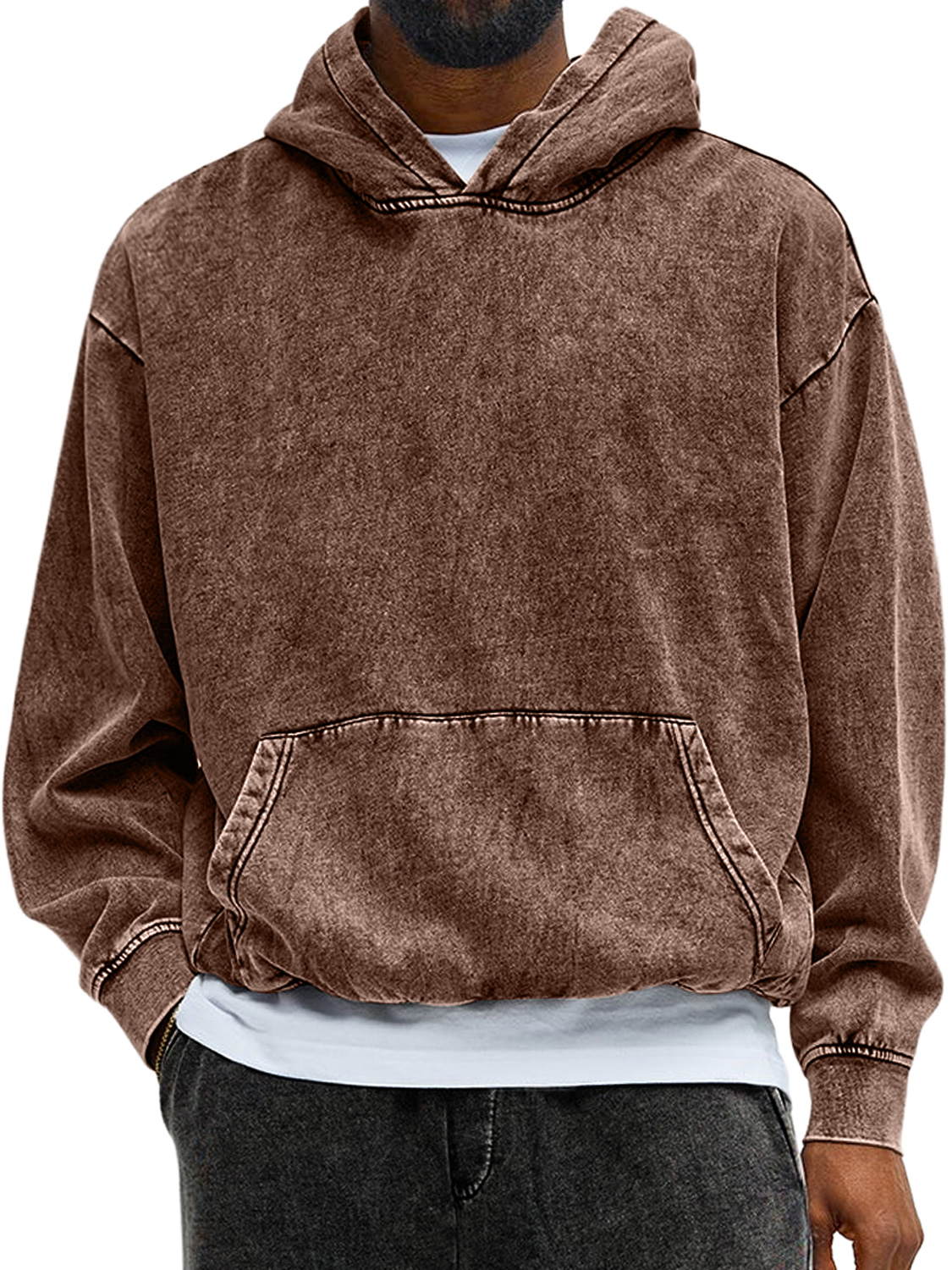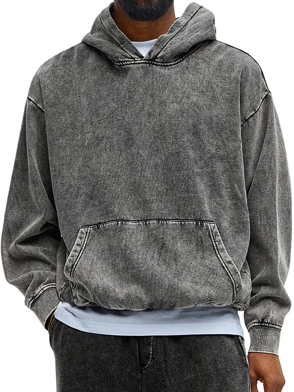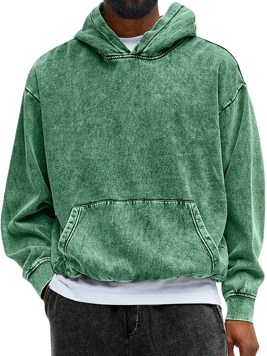 Herren Vintage gewaschenes Baumwoll Kapuzen Sweatshirt mit langen Ärmeln